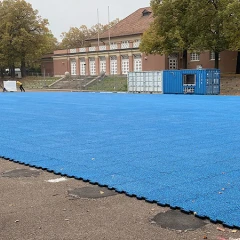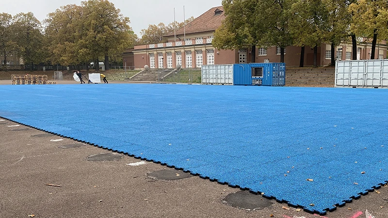 Einfache Verlegung: Mit wenig Aufwand lassen sich Fallschutzplatten schnell und unkompliziert auf befestigten und unbefestigten Untergründen verlegen.