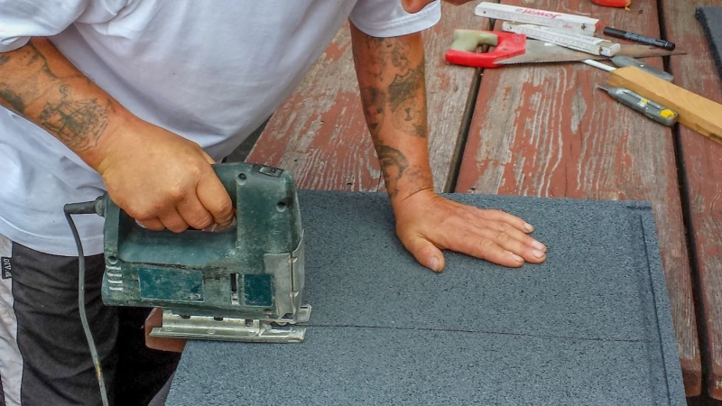 En principe, les tapis antichoc ou autres dalles en granulat de caoutchouc peuvent être traités de la même manière que le bois massif qui peut être scié avec précision, coupé en biais, percé et fraisé. Donc, avec un bon outil, vous pouvez les couper rapidement et en toute sécurité.