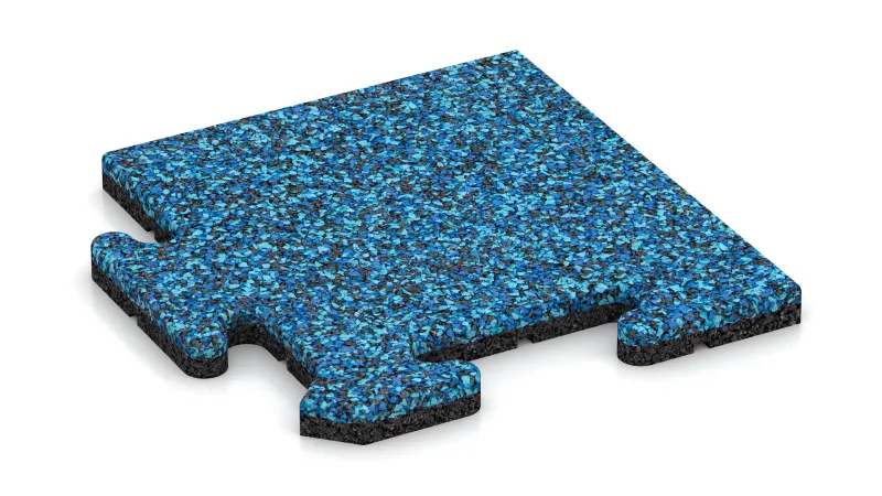 Pour qu’une surface ne soit pas seulement fonctionnelle mais aussi esthétiquement homogène, les dalles d’angle doivent correspondre exactement aux autres dalles. C’est pourquoi elles sont fabriquées exclusivement à partir des mêmes dalles produites pour chaque commande – avec un design de couleur, une densité et un matériau identiques. On garantit ainsi un rendu global harmonieux. Les dalles d’angle sont donc toujours réalisées uniquement dans le cadre d’une commande et livrées avec les dalles correspondantes.