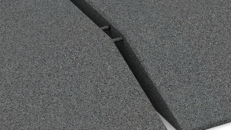 Une application typique est un îlot de jeux dans une zone piétonne pavée ou dans une cour d'école posée de dalles antichoc. La dalle de coin doit être toujours collée au sol existant.
