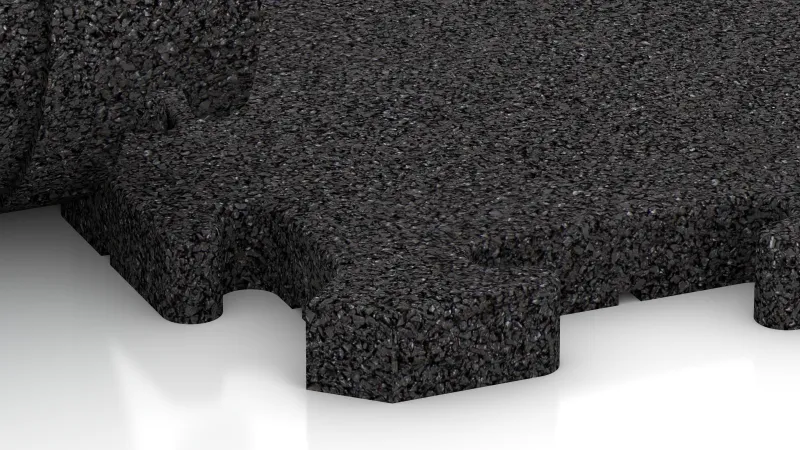 Jede Matte ist mit einer präzise geformten Puzzleverzahnung ausgestattet, die sich leicht und passgenau verbinden lässt. Die umlaufende Fase sorgt dabei für ein sauberes, geordnetes Fugenbild. So entsteht ein stabiler, formschlüssig verbundener Plattenteppich mit hochwertiger Optik.