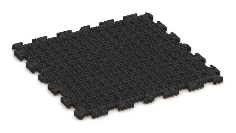 De basis van de tegel bestaat uit PU-gebonden ELT-rubbergranulaat. Optioneel kan de bovenzijde worden voorzien van een gekleurde EPDM-slijtlaag die door en door gekleurd, UV-stabiel en zeer duurzaam is. EPDM is bovendien vrij van schadelijke stoffen en voldoet zelfs aan de strenge normen voor babyspeelgoed – dus volledig veilig bij direct huid- of pootcontact.