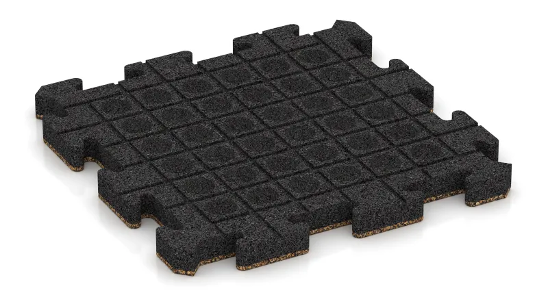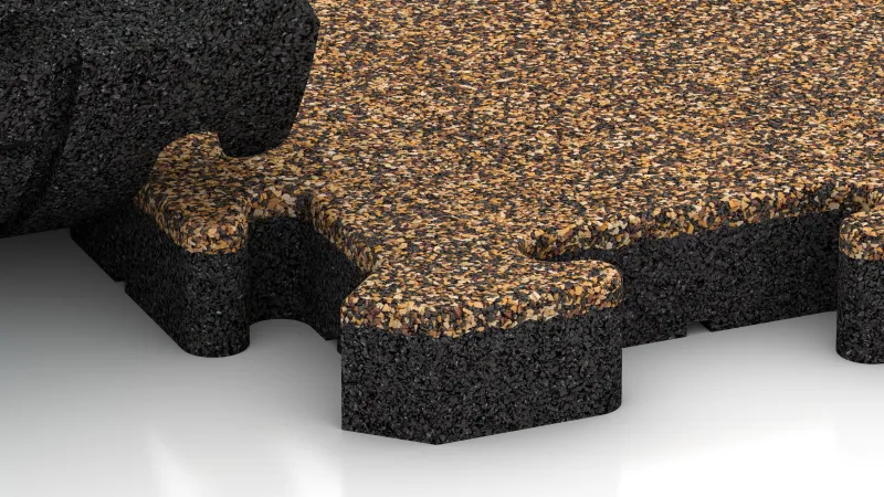 Zwei Plattenseiten verfügen über ein positives Zahnprofil, zwei über ein passendes negatives. Beim Verlegen greifen die Platten von unten formschlüssig ineinander und bilden eine dauerhafte, mechanisch sichere Verbindung. Von oben ergibt sich ein geschlossenes, fugenbündiges Erscheinungsbild mit gleichmäßiger Geometrie, das meist die Form eines klassischen Schachbrettmusters hat.