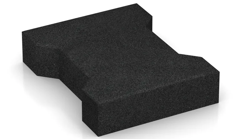 Résistant & durable. Le pavé en caoutchouc double T est résistant au gel et aux intempéries. Il reste dimensionnellement stable même en cas de températures extrêmes et, contrairement au béton, ne présente pas d’écaillage. Un vieillissement naturel peut apparaître avec le temps, mais il n’affecte pratiquement pas la fonctionnalité.