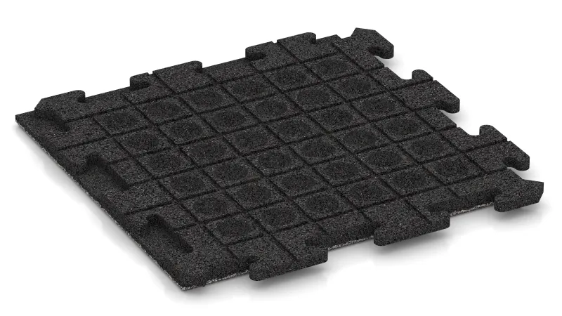 Zwei Plattenseiten verfügen über ein positives Zahnprofil, zwei über ein passendes negatives. Beim Verlegen greifen die Platten von unten formschlüssig ineinander und bilden eine dauerhafte, mechanisch sichere Verbindung. Von oben ergibt sich ein geschlossenes, fugenbündiges Erscheinungsbild mit gleichmäßiger Geometrie, das meist die Form eines klassischen Schachbrettmusters hat.