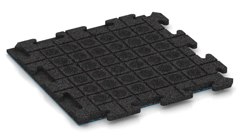 Elke tegel bestaat uit twee lagen: een meerdere millimeters dikke slijtlaag van door-en-door gekleurd, schadstofvrij EPDM-rubbergranulaat en een draaglaag van zwart ELT-rubbergranulaat, gerecycled uit autobanden. Deze structuur zorgt voor elasticiteit, stabiliteit en veiligheid en is bestand tegen UV-straling en chloorwater.